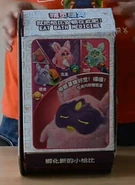 The toy reacts to being tilted, shaken, petted, tickled, and fed. The toy can change personalities, unlike a real Furby Connect. According to a stock photo, Chuby's eye animations may be different when it changes personality.[1] It also has a growth function where it initially only speaks Elven and gradually starts speaking Chinese over time, working similarly to a 1998 Furby.[2] The box of the toy claims Chuby Elf can display over 150 eye animations, like the Furby Connect, and say over 800 different phrases, like the 1998 Furby. It has an AR app where you can feed it, give it a bath and take it to the toilet. Aside from choosing foods from the app to feed it, you can play a game where you catch fish and feed them to your Chuby Elf. According to the app's description, Chuby Elf can lay eggs and you can check to see if your Chuby Elf is sick. The toy uses Bluetooth to interact with its app, according to the app itself and an official video of the toy.[3]