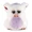 This Furby has blue body fur and ears. The tummy of this Furby is light purple. Its hair tuft is light purple with blue streaks. The insides of its ears are brown-red. It has tan eyelids with black eyelashes and a tan rubber beak with a red rubber tongue inside. Its feet are also tan with brown toenails painted on them.