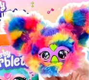 The 3rd Bootleg Luv-Lee has purple fur with pink, cyan and blue spots. The Bootleg Luv-Lees have a cheaper fur compared to the official version so the fur is not as soft. The 3rd Bootleg Luv-Lee has a white hair tuft and white feet like the rest of Bootleg Furblets. The 3rd Bootleg Luv-Lee has a lime green faceplate with lime green innner ears instead of the usual pink color of the first two versions. The 3rd Bootleg Luv-Lee has a teal cyan heart gem and a teal cyan beak. The 3rd Bootleg Luv-Lee has pink or red eyes with music notes in them. the 3rd Bootleg has a slightly more darker fur compared to the other two versions and it is the only Bootleg Furblet in general that has teal cyan parts.