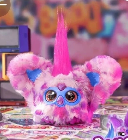 The 5th Bootleg Hip-Bop has pink fur with a leopard, magenta and purple spotted pattern exactly like in the final version. The difference between the fur of this bootleg and the one on the official version is that the Bootleg one has a cheaper made fur so it is not as soft as the one in the official version. The 5th Bootleg Hip-Bop has a pink hair tuft and white feet just ike in the rest of Bootleg Furblets. The 5th Bootleg Hip-Bop has a pink heart gem and a pink beak, basically the same colors as the fifth version. This Bootleg Hip-Bop has a blue faceplate and blue inner ears. The difference between this Bootleg Furblet and the 4th version is that this one has pink eyes with music notes in them and on the 4th version they are blue with lightning bolts in them. (Additionally, the Bootleg 5 Hip-Bop is just an official stock picture of Hip-Bop used in some Asian stores but recolored and with the Furby trademarks removed)