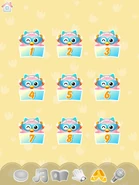 This version of Pixy is only known to come in three variations. These include white with pink stomach fur or with the colors inversed, and purple with pink. The white version comes with a pink bow with darker pink spots, while the pink version comes with a white bow and pink spots on it. Though the purple version is only known to come with a sash that has a strawberry attached, the pink version can also come with this instead of a bow. The 2020 version of Pixy comes with a plastic bottle, comb and a sticker sheet. It is unknown if there is a blue Pixy with white stomach fur or a red Pixy with yellow stomach fur.