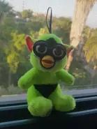 The Green Humanoid Furby / Anthropomorphic Furby is a Furby Fake plush that was made by a company called "Sandy", which also made other knockoffs like the Knockoff Talking Keychain. The Green Humanoid Furby Fake has no official name.