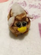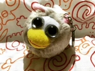 This version may either have keychains, a loop of thread attached to the top of their heads, or just a beak which appears to be a piece of fabric sewn onto the toy itself. The eyes may be smaller and with more space between them on its face.