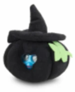 This version resembles a black pumpkin with a witch's hat. It has a green leaf stuck to its right side. It has the face of what looks like a Mini Pet Hibou with a blue beak and faceplate poking out of it. The witch's hat is made out of a different material and looks more detailed than the released version.