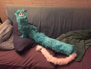 A Long Furby, often also referred to as Long Boi, is an oddbody Furby known for its long body. They vary in length, but are generally in the 3 to 5 foot range. Traditionally, they still have their ears and feet, but the only real requirement is that they have the Furby face. To support their long bodies, a plastic doll armature, wire, or coolant pipes are used as a skeleton, making them posable.